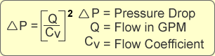 过滤器或过滤器上的压力损失可以使用系统的流量和该过滤器或过滤器的Cv系数来计算。